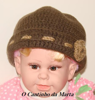 Estes foram os três chapéus que eu fiz em crochet para a Di usar no inverno que já passou... Acabei de os pôr de lado, mas antes, resolvi chamar a minha modelo para posar com eles para a fotografia. Chamamos-lhe Barranita, esta bonita boneca foi oferecida á Di no seu primeiro aniversário e ela canta em espanhol e no meio das cantorias diz "Barranita" daí o nome.