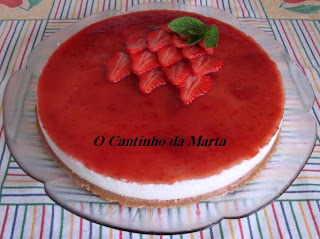 Para comemorar o aniversário de casamento nada melhor que uma doce sobremesa para acompanhar o almoço... Sinceramente, nunca tinha comido, mas depois de ver algumas receitas aqui na blogosfera, decidi experimentar. Posso dizer que ficou aprovada!!! A receita foi uma mistura do que vi aqui, com uma espreitadela ali e outra aqui!!!