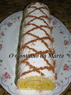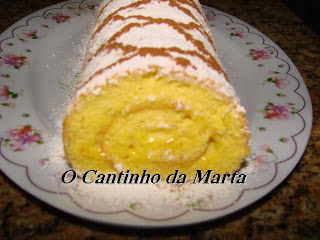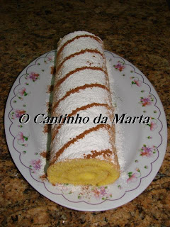 - Na receita original também dizia para polvilhar o creme com canela em pó antes de enrolar a torta, mas só me lembrei disso depois de já a ter enrolado... Paciência, fica para uma próxima, por isso é que a resolvi decorar com canela em pó.