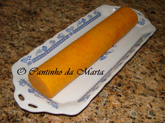 Raspe as cenouras, corte-as em palitos e coza em águatemperada com sal. Escorra bem e reduza-as a puré. Junte a vaqueiro e a raspada casca de laranja e misture bem. Adicione 180 g de açúcar e as gemas e bataaté obter um creme homogéneo. Bata as claras em castelo bem firme e, por fim,incorpore-as suavemente no preparado anterior, alternando com a farinhapeneirada com o fermento. Deite a massa num tabuleiro para tortas previamenteuntado e forrado com papel vegetal, igualmente untado com vaqueiro, e coza emforno quente (220ºC) durante 15 minutos. Desenforme sobre uma folha de papelvegetal polvilhada com açúcar e enrole.
