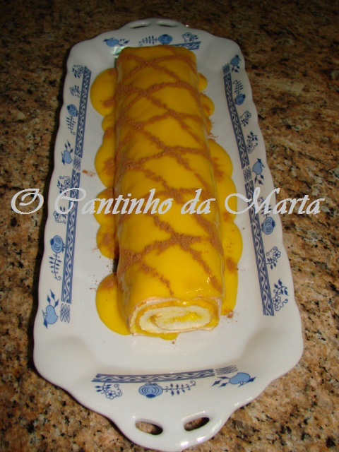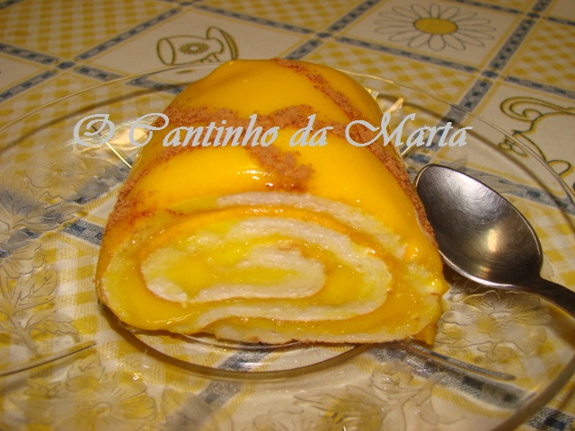 Em relação à torta, costumo-a enrolar praticamente fria. Polvilho o pano com açúcar em pó para que não se agarre e a pele da torta fica tão fofinha que é fácil de enrolar e neste caso não partiu.