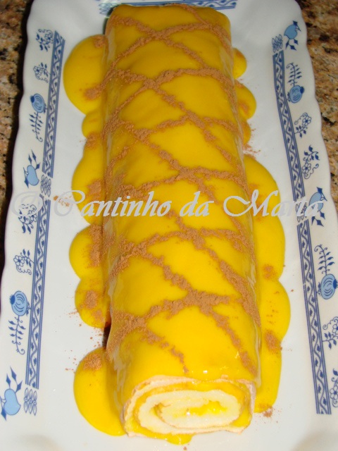 espalhe o doce de ovos. Com a ajuda do pano enrole em forma de torta e leve ao