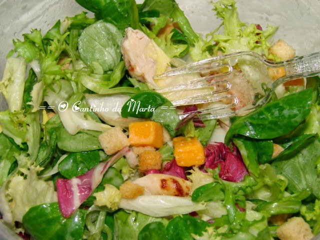 A escolha recaiu sobre a salada fresca César… Talvez pelo Molho César, que é mesmo uma maravilha! Adorei a combinação de ingredientes, frescos e saborosos!