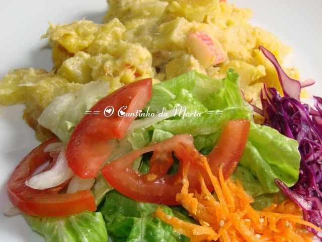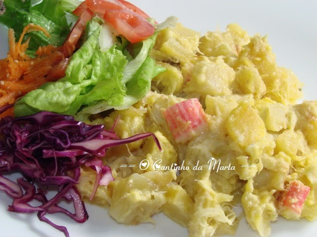 potas cortadas em pedaços, um pouco de coentros picados e tempere com pimenta.