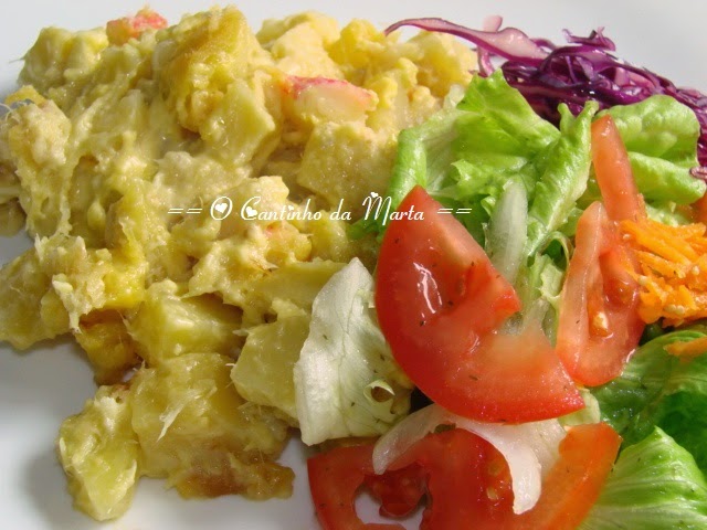 bem e coloque o puré num saco de pasteleiro. Disponha o preparado de pescada no