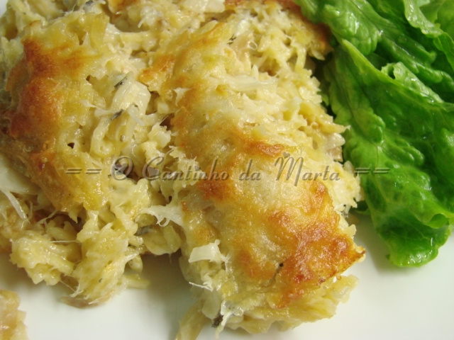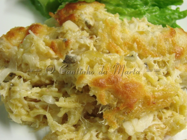 ficar amolecida. Junte depois o bacalhau lascado e sem espinhas. Deixe refogar