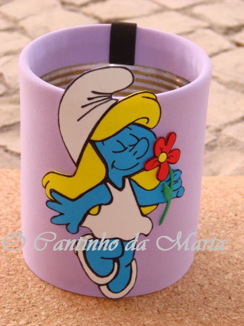 mais uma lata que virou porta lápis e afins, com tudo cortadinho à tesoura...