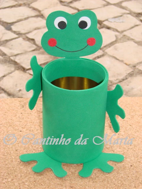 Para variar um bocadinho em relação aos tradicionais porta-lápis/marcadores, desta vez, decidi criar um porta-moedas/notas, o chamado Mealheiro!