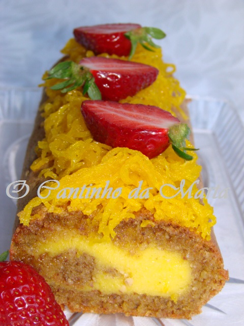 pano com coco… Pormenores! Posso dizer que é uma torta de quindim… Ou algo do